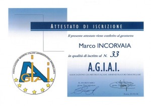 - Iscrizione al n° 33 dell’Associazione Geometri Italiani Amministratori Immobiliari (A.G.I.A.I), dal 20.09.2006.